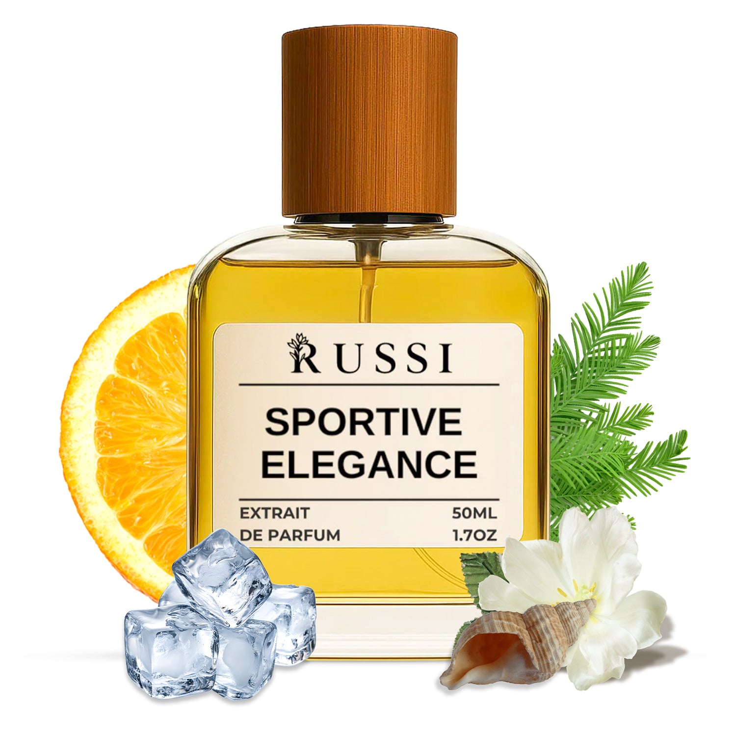 SPORTIVE ELEGANCE – tai gaivus, sportiškas ir elegantiškas Extrait de Parfum, sukurtas pagal Chanel Allure Homme Sport. Mandarinai, jūros natos, baltasis muskusas ir kedras kuria aktyvų, švarų kvapą vyrams.